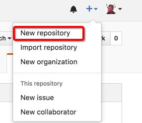 - 当连接好github之后,我们可以在github上建立自己的仓库。点击头像旁边的+号,选择new repository