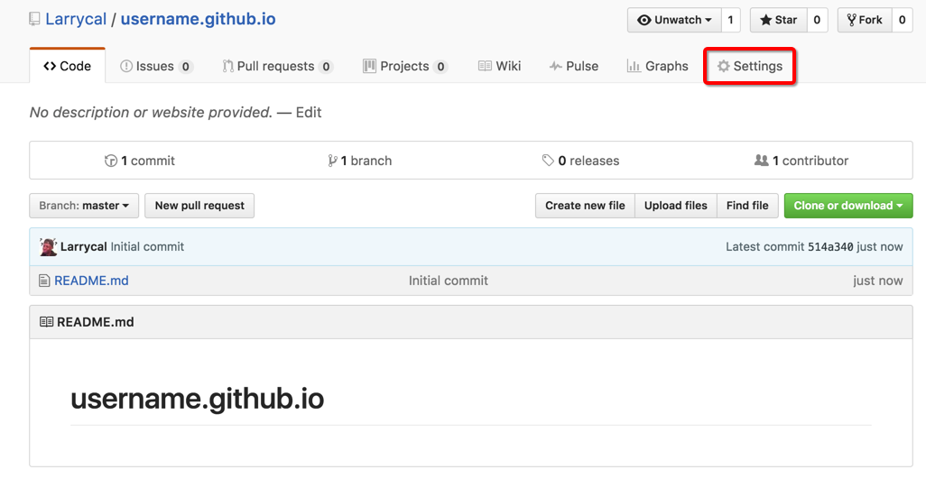 创建好仓库后,我们可以看见如下图所示界面,我们点击setting进入设置界面
